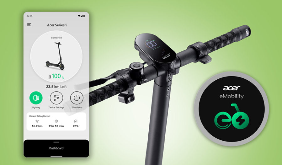 Integrate with advanced smart technology, connect to your eScooter with the Acer eMobility app to monitor your scooter’s performance and gain access to additional features to enhance your journey.